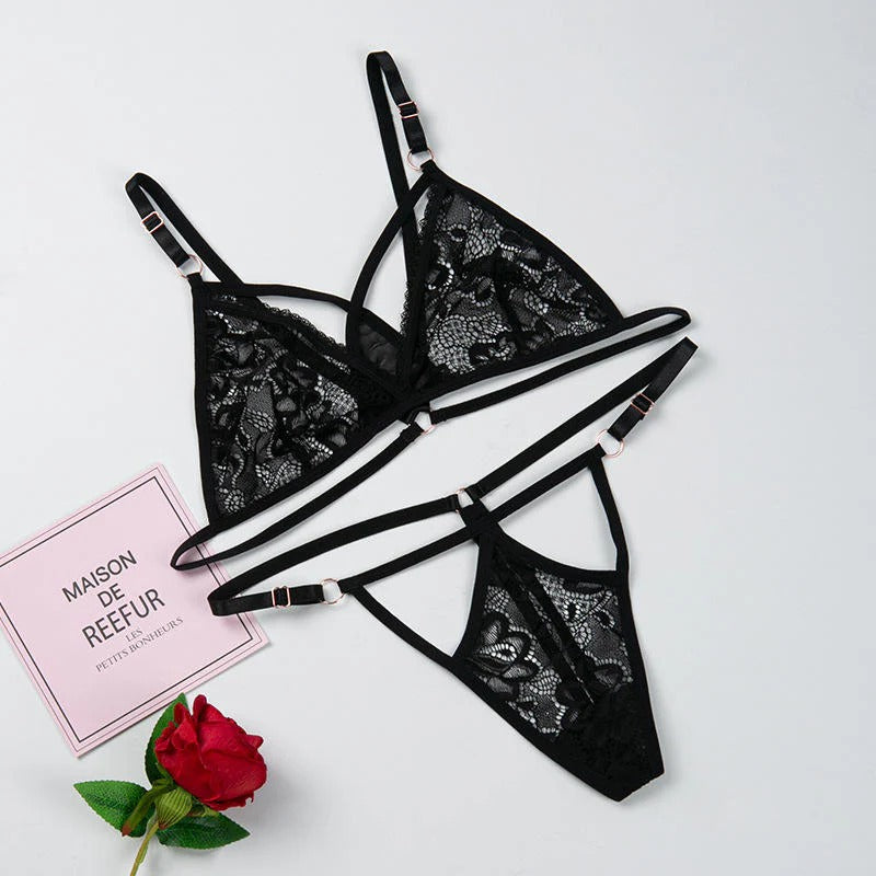 Lingerie Set Strappy Lace Bralette and Panty Sets V-neck Outfit